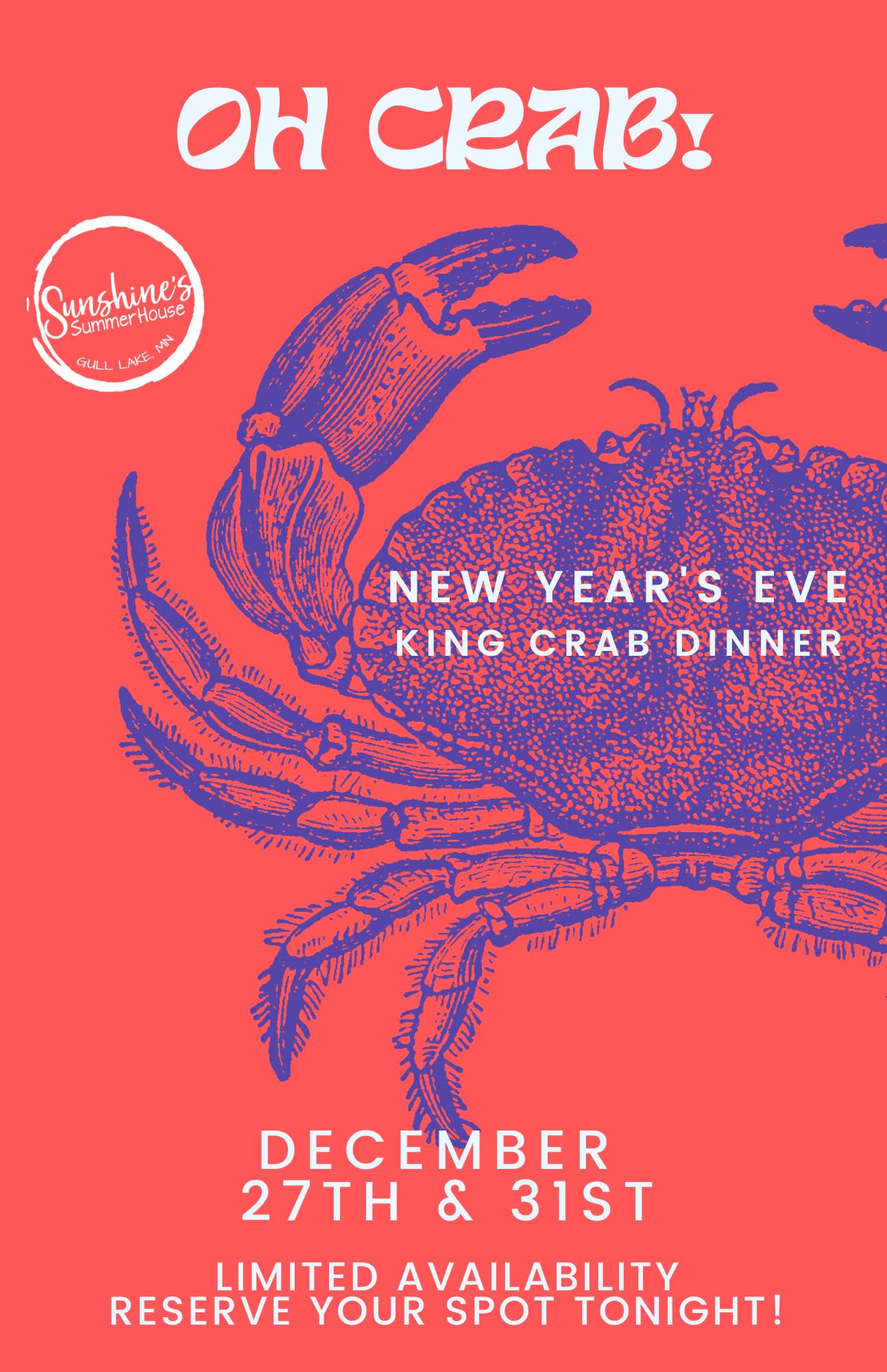 Sunshine's NYE King Crab Night is almost here!