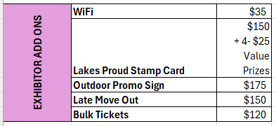 - Guarantee traffic to your booth by participating in the Lakes Proud Stamp Card! Your business logo will be included on the stamp card that will be distributed to attendees during. Participating exhibitors will receive a special Lakes Proud stamper and sign. Attendees must complete their card to be eligible for a prize.
