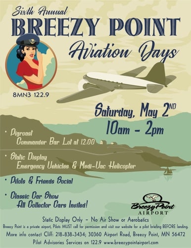 Come on up to Breezy Point Airport for the 6th annual Aviation Days! We have something going on