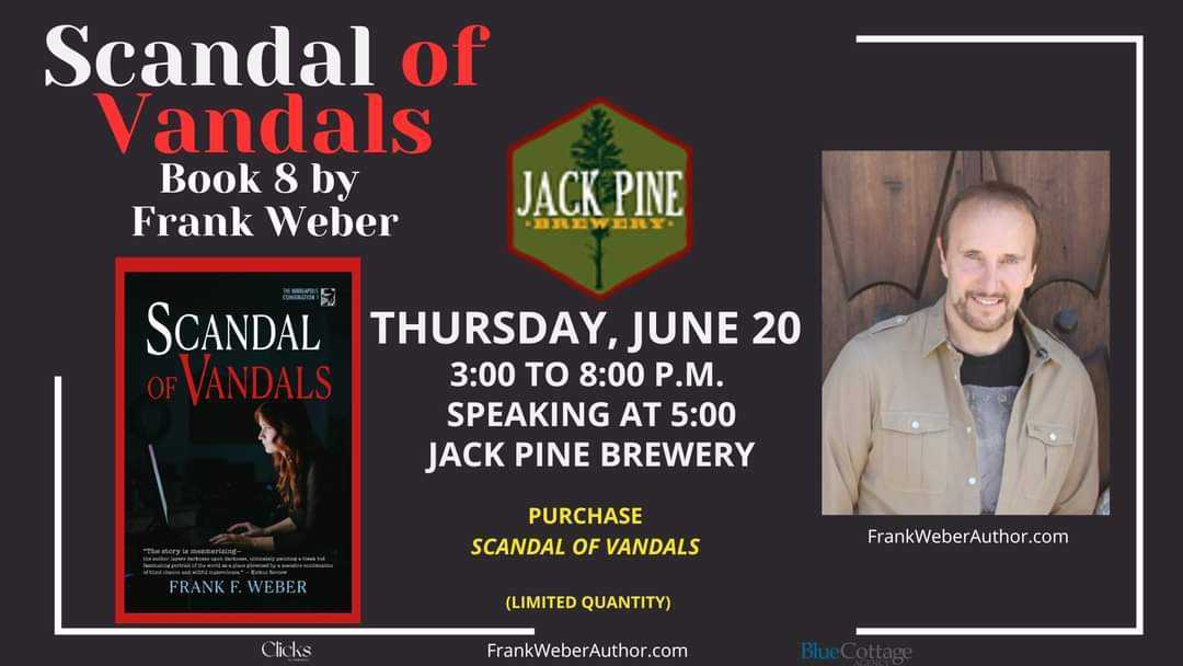 Frank F. Weber, True Crime author & Forensic Psychologist, will be at Jack Pine Brewery, for the release of his newest novel, Scandal of Vandals. From will speak from 5:00 to 6:00 p.m. on a MN mystery once referred to as “the crime of the century.” A prominent attorney was accused of hiring a hitman to kill his wife. The investigation revealed affairs, angry resentment toward the attorney and a connection to the MN Mafia. Frank will demonstrate a lie detector test (volunteer a friend). Frank will be at Jack Pine from 3:00 to 6:00 p.m. signing and selling his books and answering questions. Jack Pine Brewery is located at: 15593 Edgewood Drive North, Baxter, Minnesota, 56425.Additional Info