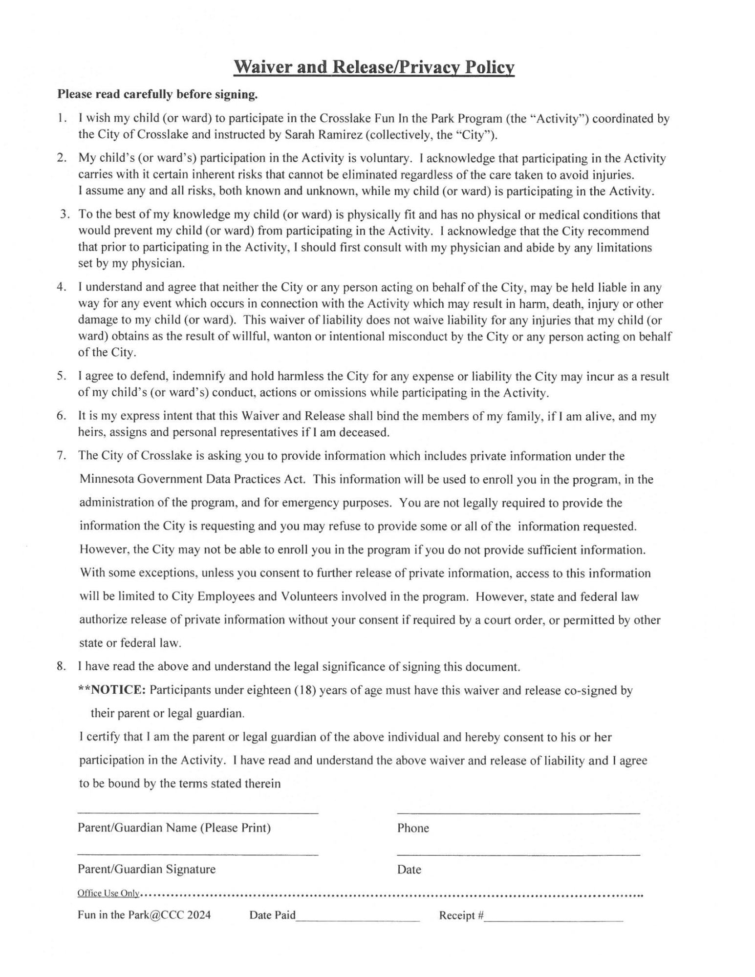 Fun in the Park - Crosslake