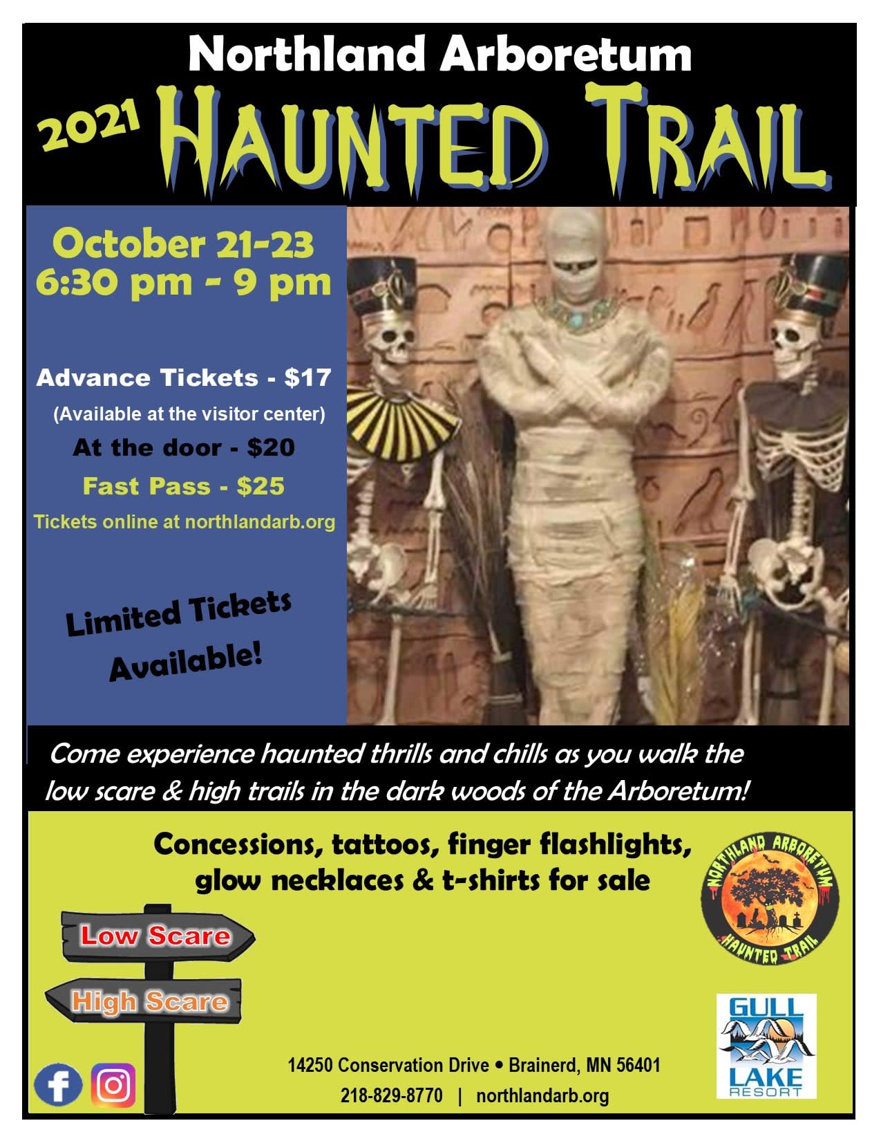 Join us for our signature scare event at the Northland Arboretum. Everyone loves our low-scare trail with concessions and games available, too. For those of you who like a little more adventure, we invite you to travel down our high-scare trail and continue the scary fun. Purchase your tickets today! Concessions will be cash-only.Additional Info