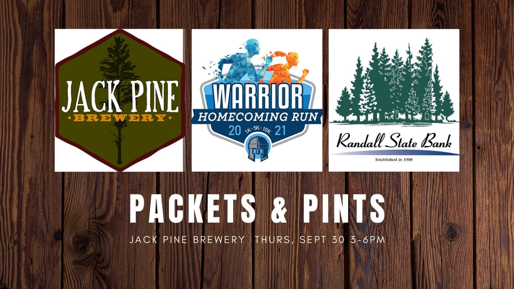 Join us at Jack Pine Brewery between 3-6pm on Thursday, September 30th! Warrior Homecoming racers can pick up their packet, bib, shirt, etc or newcomers can register on site! For each pint purchased between 3-6pm, Jack Pine will donate $1 to BPSF! Thank you to our amazing Packets & Pints sponsors - Jack Pine Brewery and Randall State Bank!Additional Info