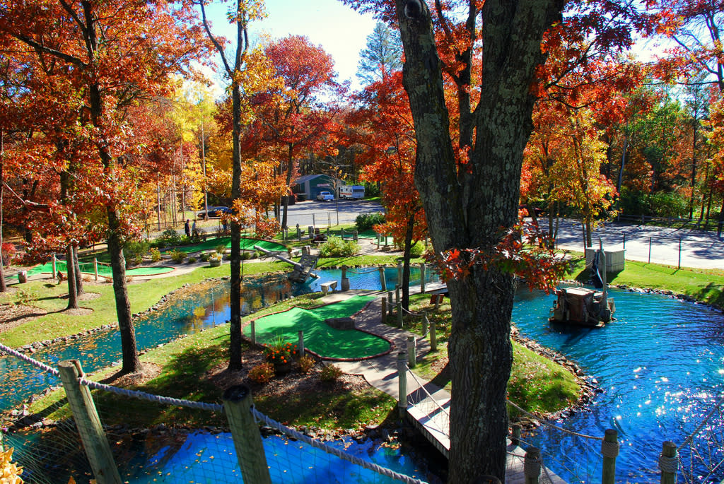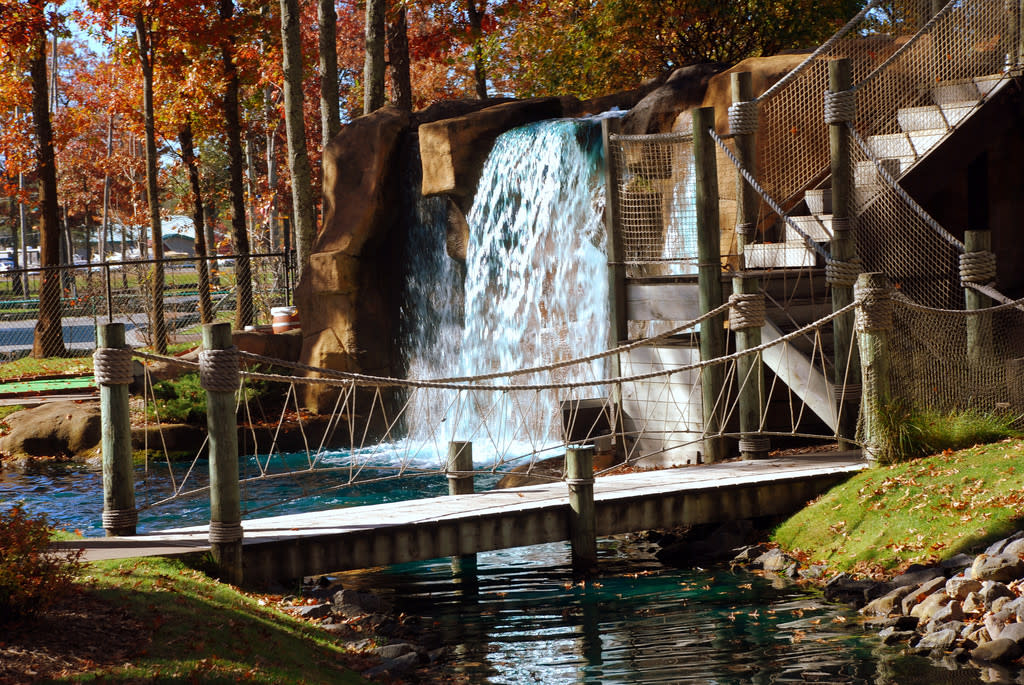 Pirate's Cove features two 18-hole courses packed with pirate adventure. Did you know that a couple of the most wealthy and successful pirates were females? Or that Blackbeard's real name was Edward Teach? You can read of the exploits and history of famous buccaneers on signs at each of our golf holes as you putt your way through mountain caves, over footbridges and beneath cascading waterfalls on our two challenging and fun courses.